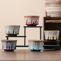 カスタムロゴセラミックエスプレッソコーヒーマグ木製ハンドル付き手作り50ml小型カップキルン変形レトロティーテイスティングカップ