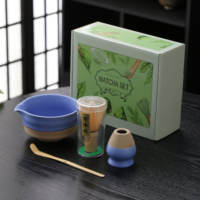 Premium Design moderno vetro eco-friendly Matcha set in più colori con ciotole e strumenti di preparazione per la cerimonia del tè